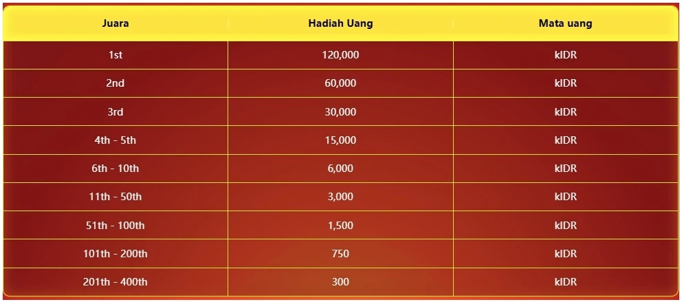 7. Hadiah Turnamen dengan total hadiah senilai IDR 600.000.000 yang akan dibagikan selama periode promosi.